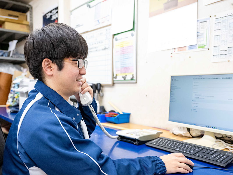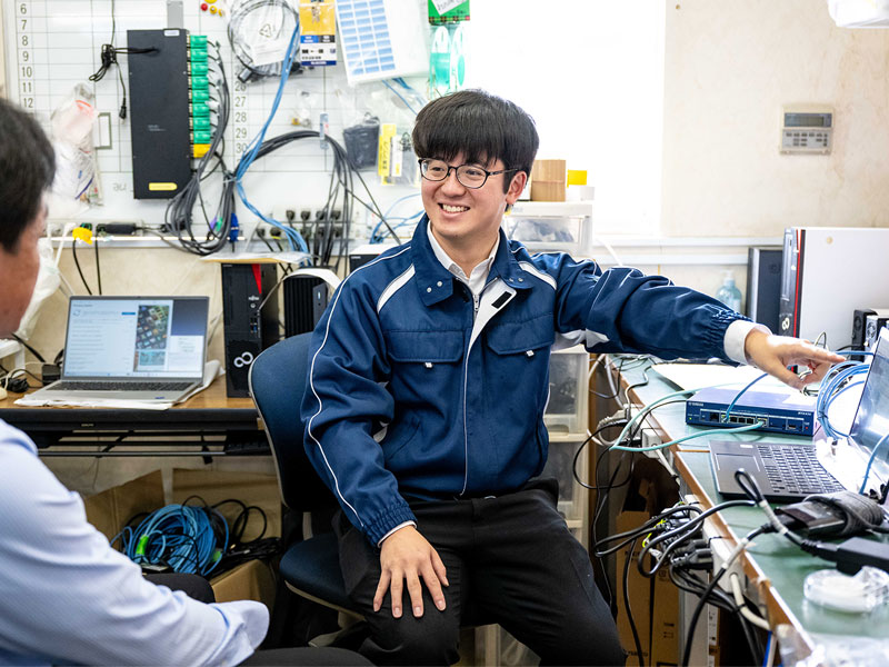 大学生のときに企業の合同説明会に参加して興味を持ち、会社見学後に入社しました。入ってみてまさに期待どおりの職場。仕事内容はお客さまの業務内容に合わせて、LANケーブルの配線から、パソコン・ネットワーク環境の設計構築、さらにその管理を行っています。また、サーバーシステムの導入や各種アプリケーションのインストール、ドメイン構築、セキュリティ設定など、サーバーを中心にしたネットワークシステムの基本構築もトータルに対応しています。最初は先輩と半年ほど同行し、現場で仕事を覚えます。社内の若手グループで学習会を開き、事例の紹介とその対処方法、トラブルごとの手順や対処する際のポイントなどを勉強しています。